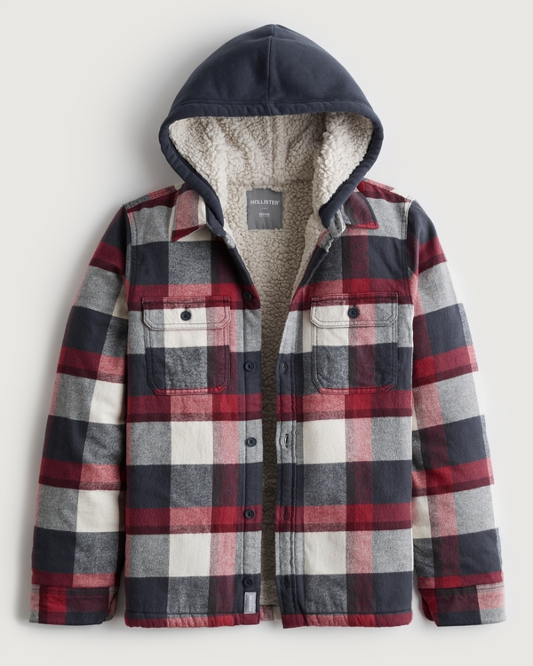 mens flannel shirt jacket with hood