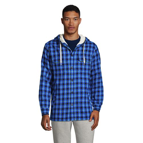 Men S Flannel Sherpa Lined Hooded Shirt Jacket Lands End